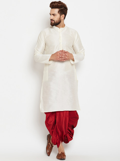 SOJANYA Men Off-White & Maroon Solid Kurta with Dhoti Pants