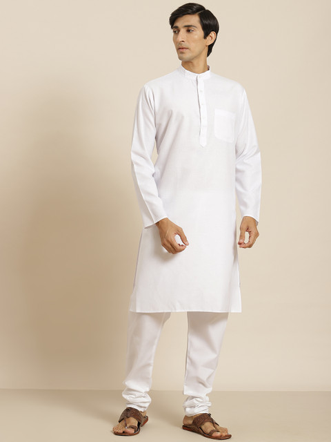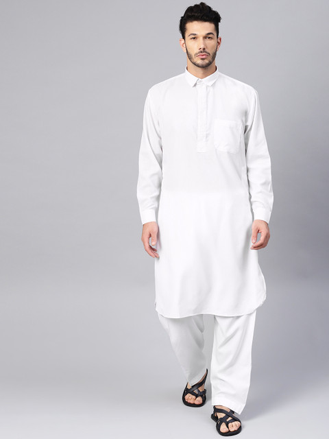 SOJANYA Men White Solid Pathani Kurta with Salwar