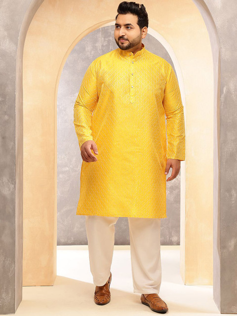 SOJANYA Men Yellow Dobby Self-Checked Straight Kurta