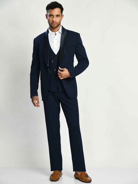 SQUIREHOOD Men Cotton Tailored Fit Tuxedo 3 Piece Suits