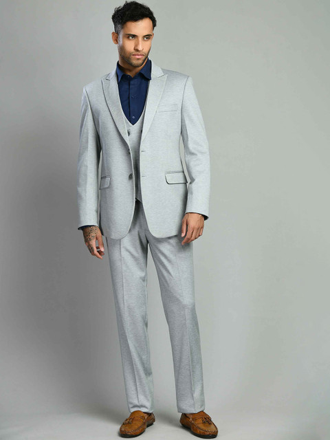 SQUIREHOOD Men Cotton Single-Breasted Smart-Fit Three-Piece Suit