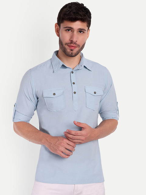 SOJANYA PLUS Men Plus Size Blue Solid Straight Kurta