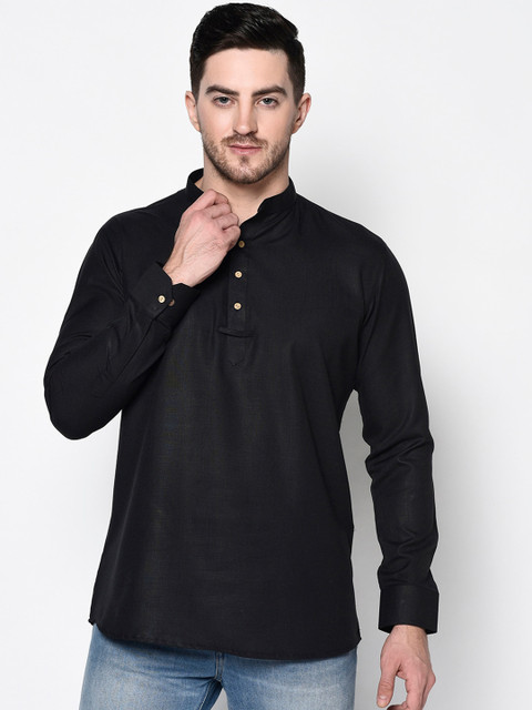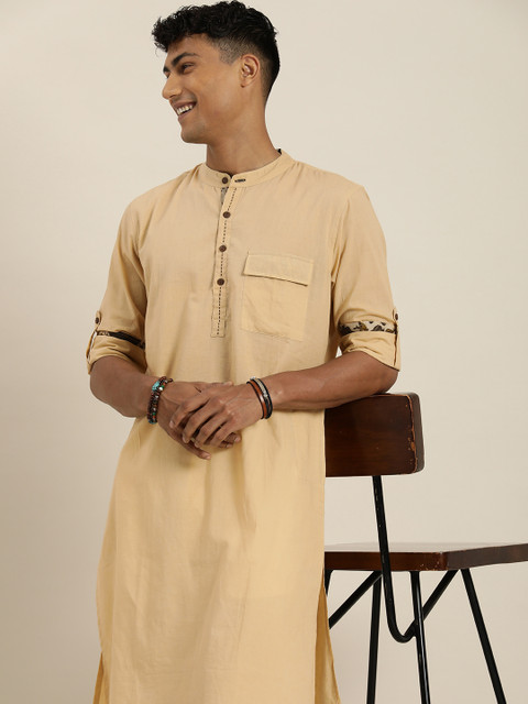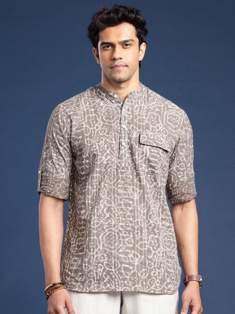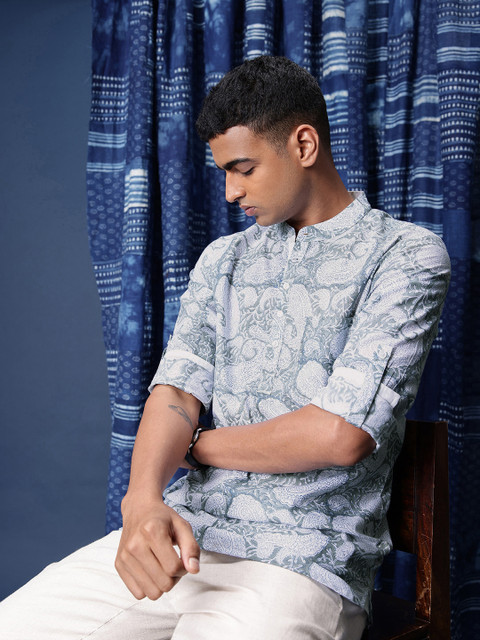 Taavi Men Handblock Printed Mandarin Collar Pure Cotton Kurta