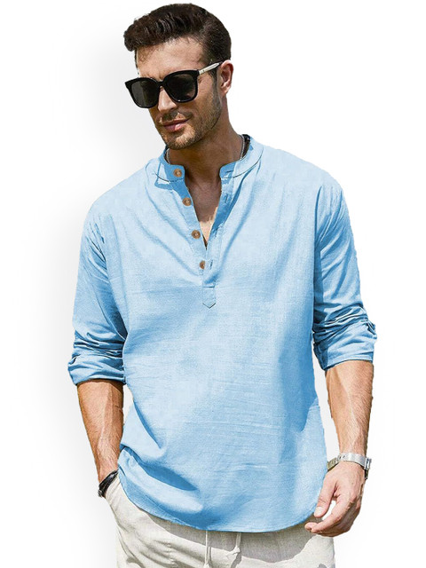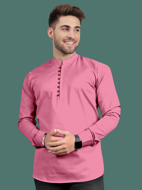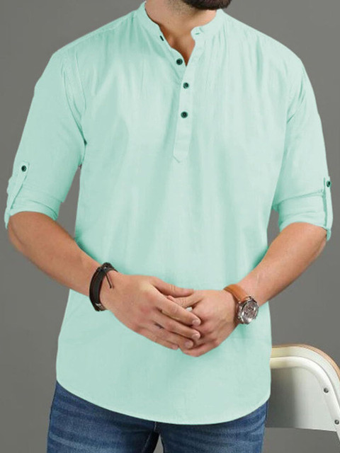 W & G Men Solid Mandarin Collar Long Sleeves Cotton Kurta