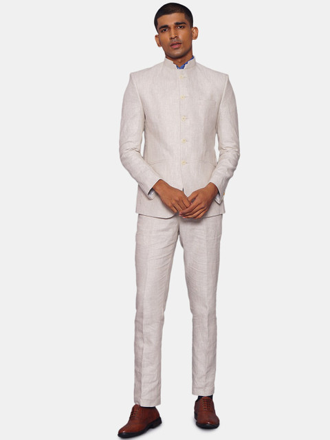 Wintage Men Off White Solid Single-Breasted 2 Piece Formal Suit