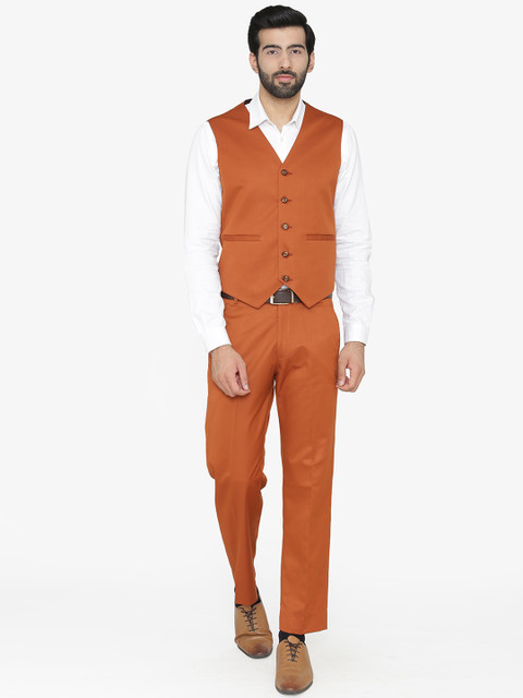 Wintage Men Orange Solid Single-Breasted Regular Fit Party Suit