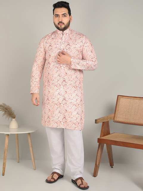 ADHIRAJAN Men Embellished Printed Festive Cotton Straight Kurtas