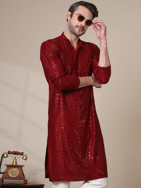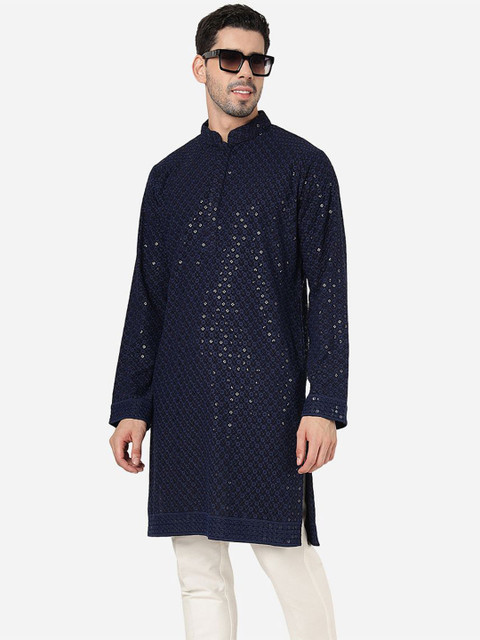 ADHIRAJAN Men Geometric Embroidered Chikankari Kurta