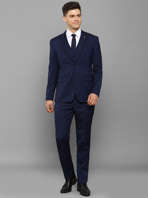 Allen Solly Men Navy Blue Solid Three-Piece Slim Fit Formal Suits