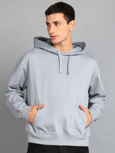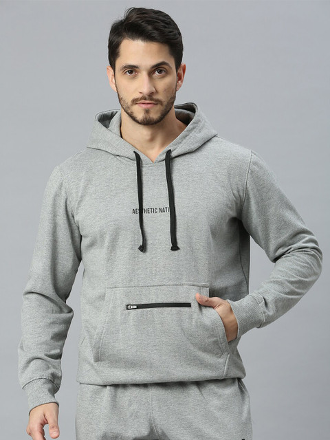 AESTHETIC NATION Men Grey Colourblocked Hooded Sweatshirt