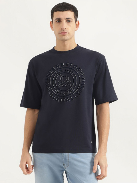 United Colors of Benetton Men Typography Printed Round Neck Cotton Oversized T-shirt