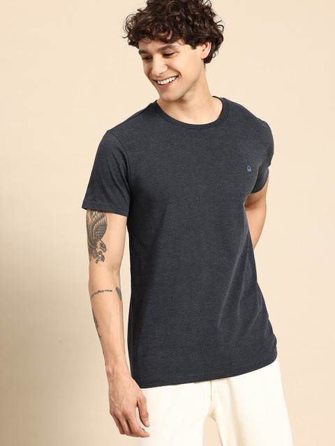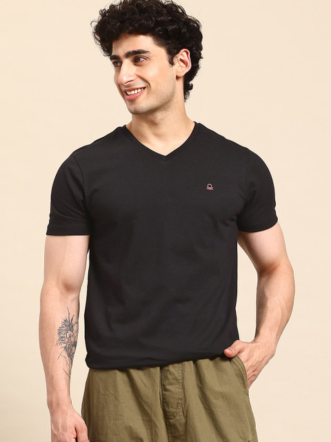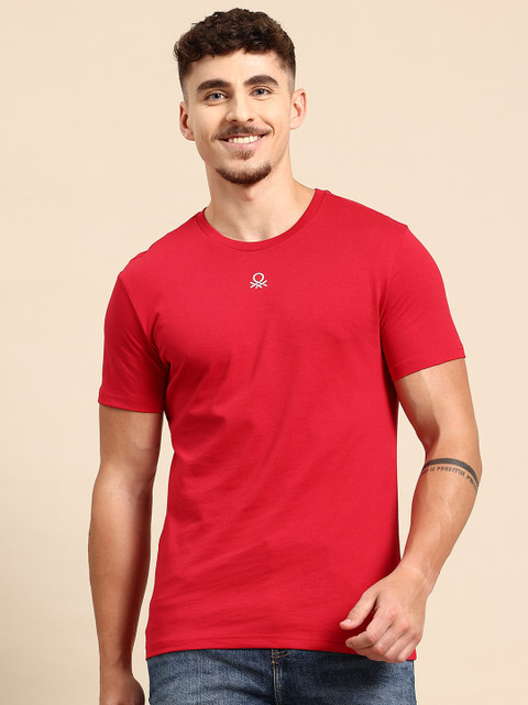 United Colors of Benetton Men Solid Round Neck Cotton Relaxed Fit T-shirt