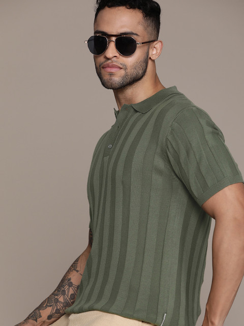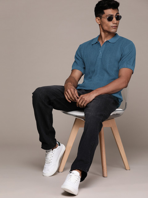 The Roadster Lifestyle Co. Ribbed Pure Cotton Polo Collar T-shirt