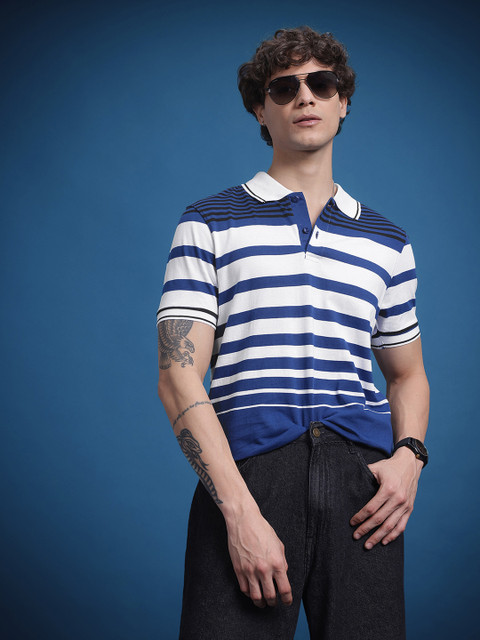 The Roadster Lifestyle Co. Striped Pure Cotton Polo Collar T-shirt