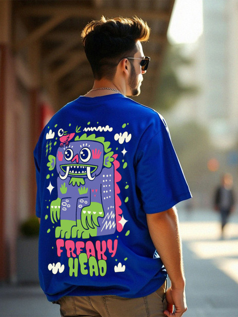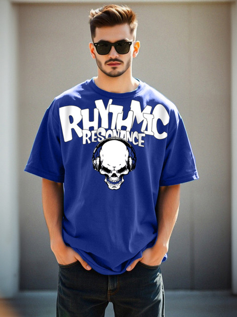 VEIRDO Men Graphic Printed Round Neck Pure Cotton Oversized T-Shirt