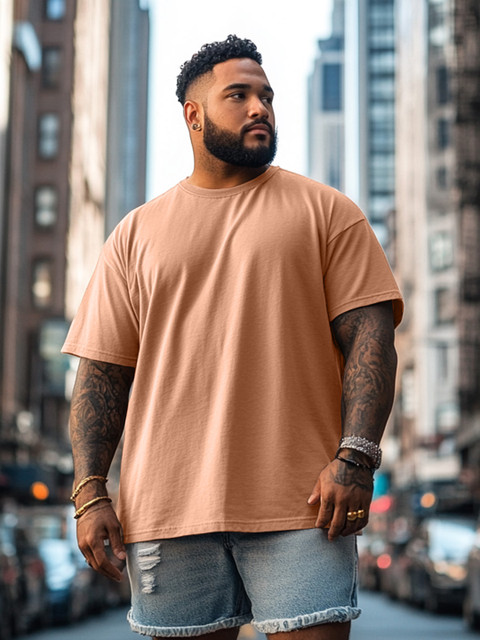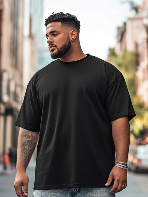 VEIRDO Men Plus Size Solid Round Neck Pure Cotton Oversized T-Shirt