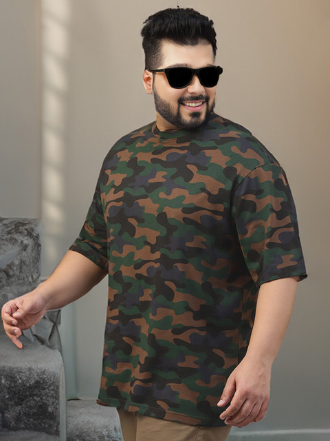 VEIRDO Men Olive Green & Beige Camouflage Printed T-shirt