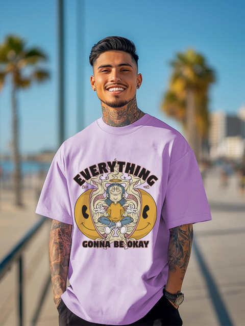 VEIRDO Men Typography Printed Round Neck Pure Cotton Oversized T-Shirt