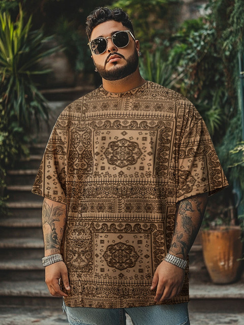 VEIRDO Men Plus Size Paisley Printed Oversized T-shirt