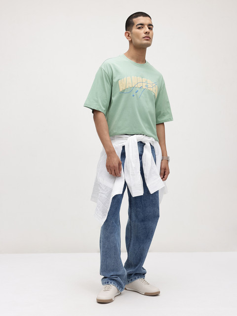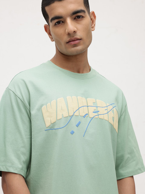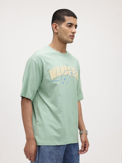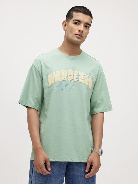 The Roadster Life Co. Men Typography Printed Pure Cotton Drop-Shoulder Sleeves T-shirt