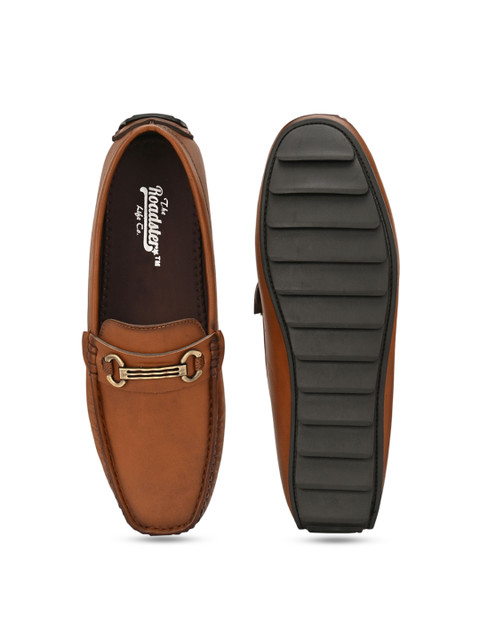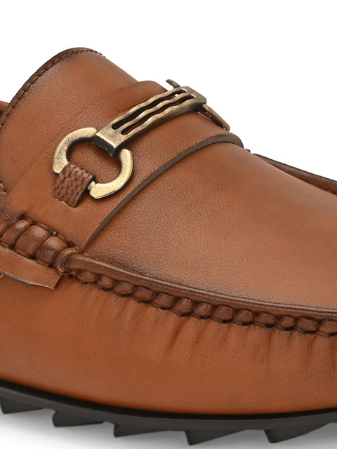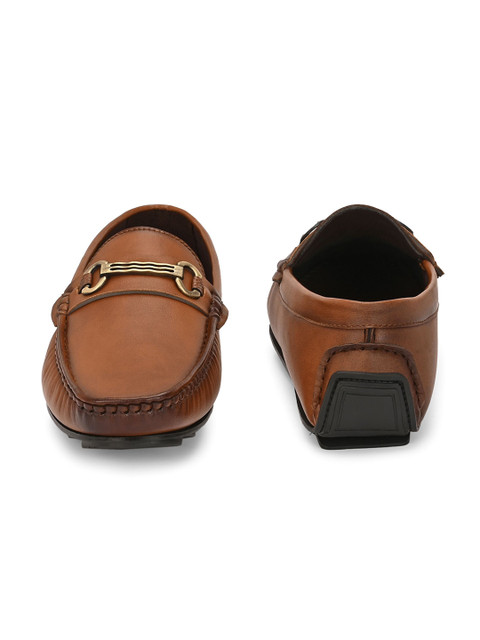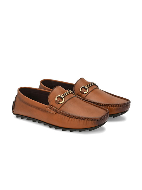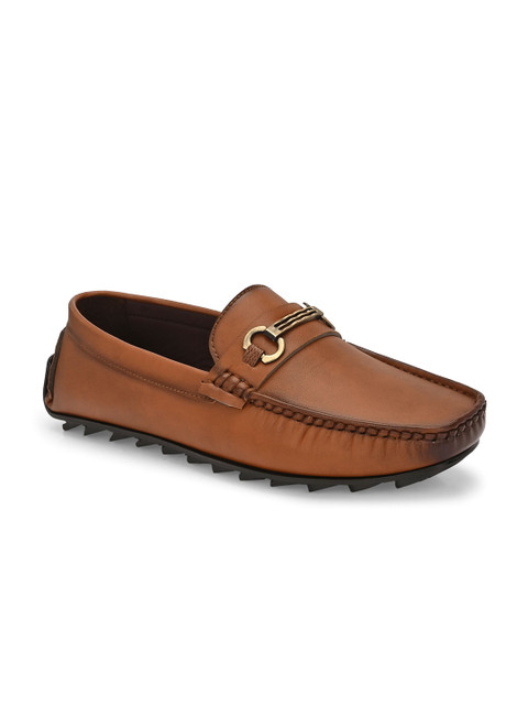 A pair of Tan solid round toe casual Driving Shoeswith regular styling has a slip on closure