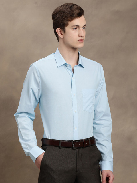 Turtle Men Blue Smart Slim Fit Solid Formal Shirt