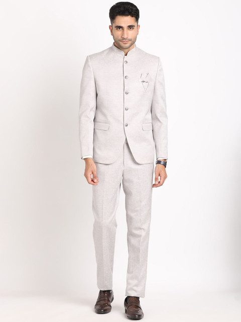 Turtle Men 2-Pcs Self Design Mandarin Collar Bandhgala Suits