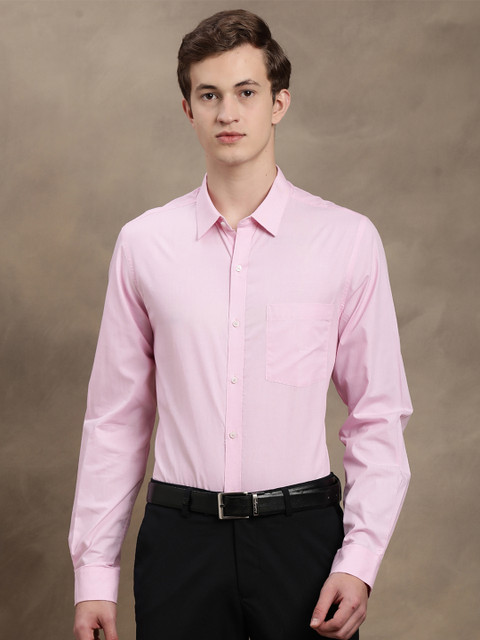 Turtle Men Pink Slim Fit Solid Formal Shirt