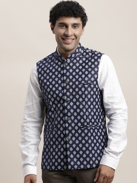 Turtle Men Printed Slim-Fit Woven Nehru Jacket