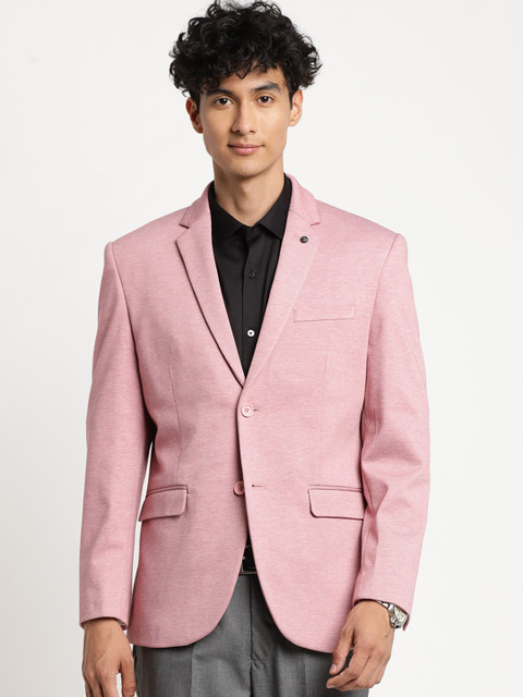 Turtle Men Pink Single Breasted Self Design Casual Blazers
