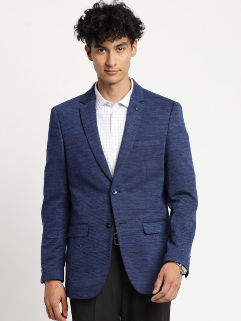 Turtle Men Navy Blue Self Design Single Breasted Casual Blazer