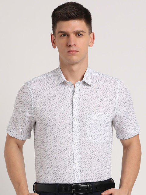 Turtle Men Modern Slim Fit Opaque Printed Cotton Linen Formal Shirt