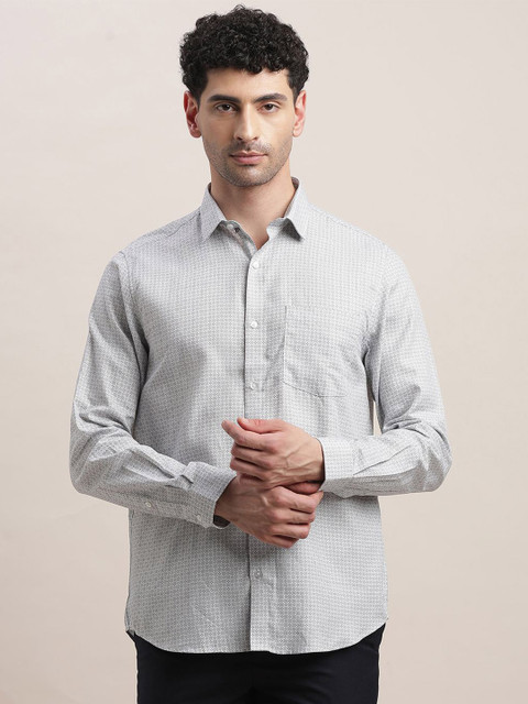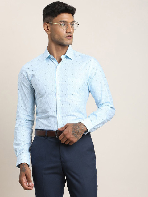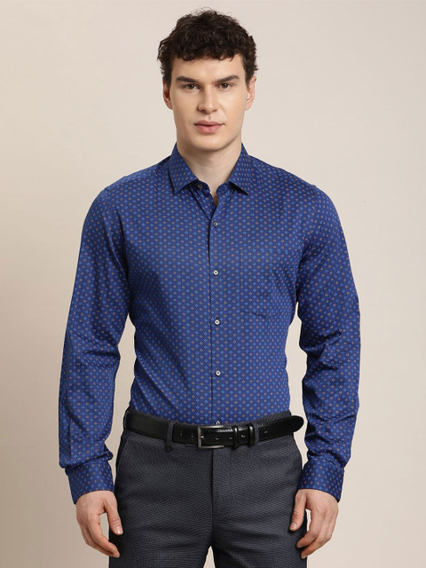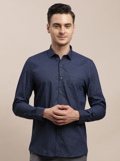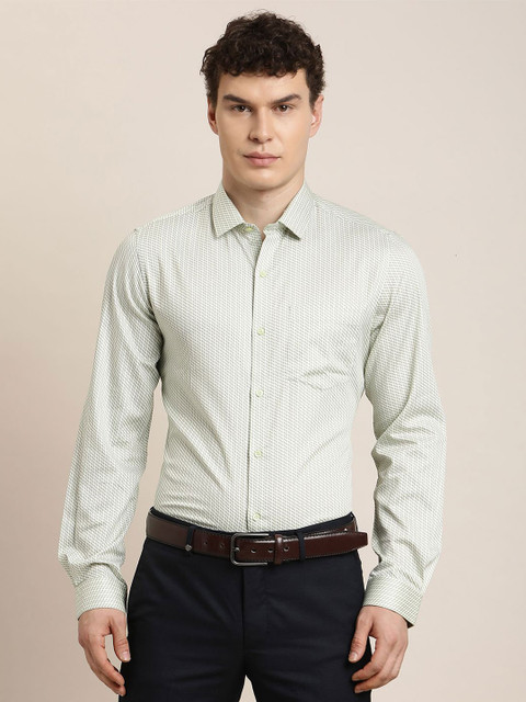 Turtle Men Standard Slim Fit Micro Ditsy Printed Spread Collar Formal Shirt