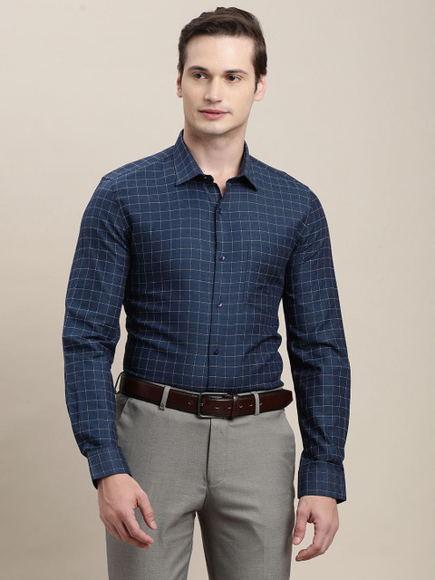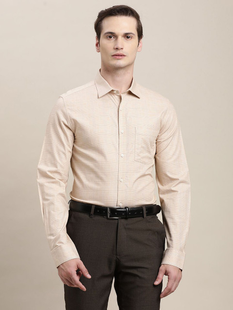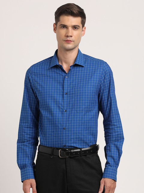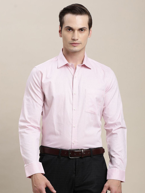 Turtle Men Standard Spread Collar Micro Checked Cotton Slim Fit Formal Shirt