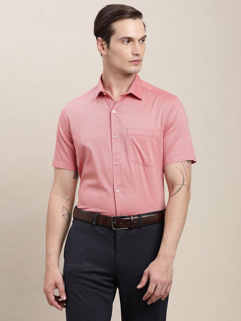 Turtle Men Standard Slim Fit Textured Spread Collar Cotton Formal Shirt