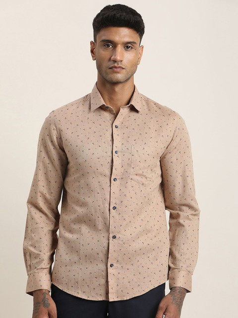 Turtle Men Standard Slim Fit Spread Collar Floral Printed Formal Shirt