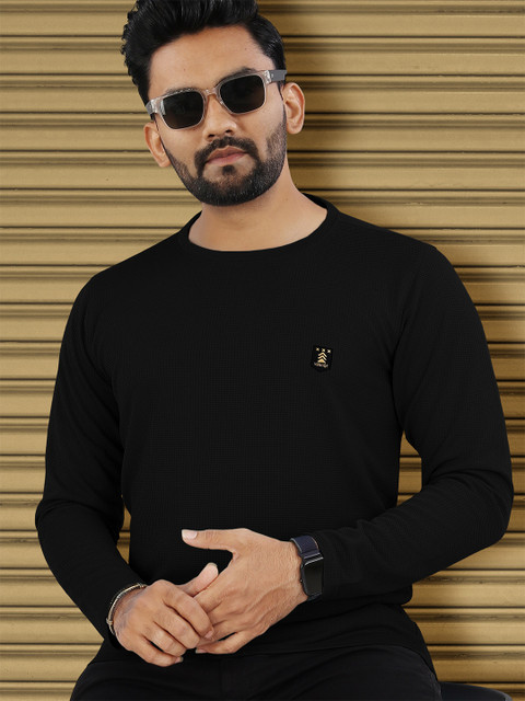 VeBNoR Men Self Design Round Neck Casual T-shirt