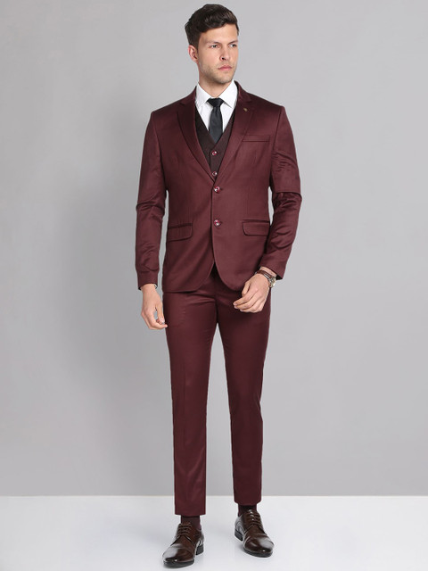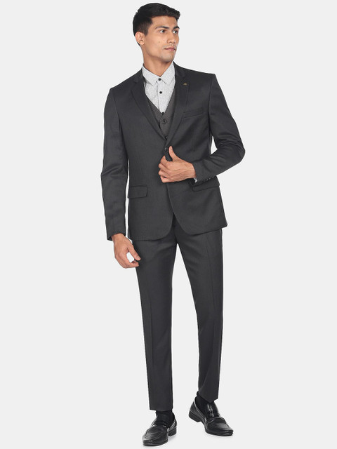 AD By Arvind Men Self Design Single-Breasted 3 Piece Formal Suits