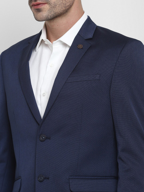 Self-design tailored-fit formal blazer, has a shawl collar, single-breasted with double button closures, long sleeves, three pockets, and a double-vented back hem.