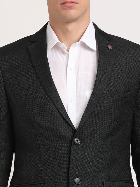 Black checked slim-fit single-breasted blazer, has a notched lapel with button closures, long sleeves and three pockets
