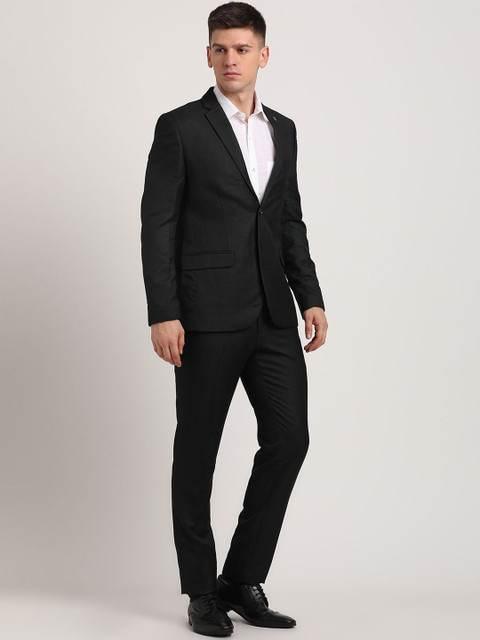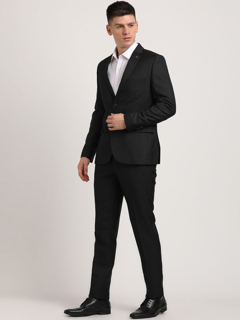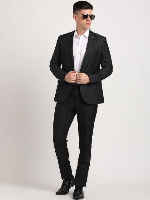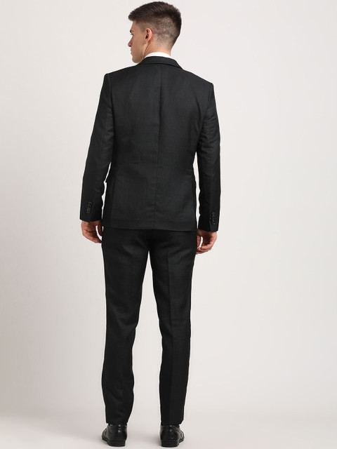 Black checked slim-fit three-piece suit