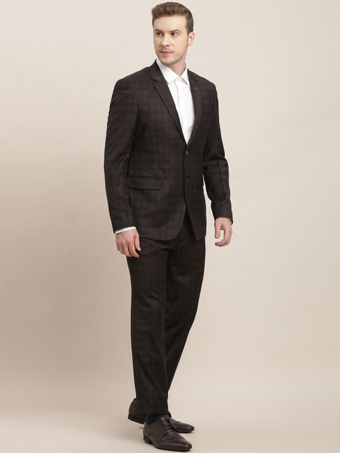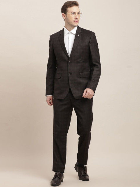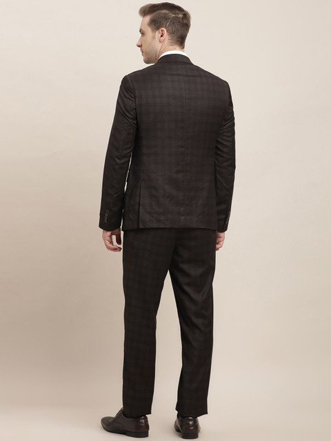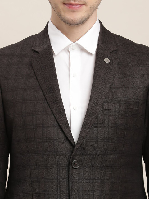 Brown checked tailored-fit single-breasted blazer, has a notched lapel with button closures, long sleeves and three pockets