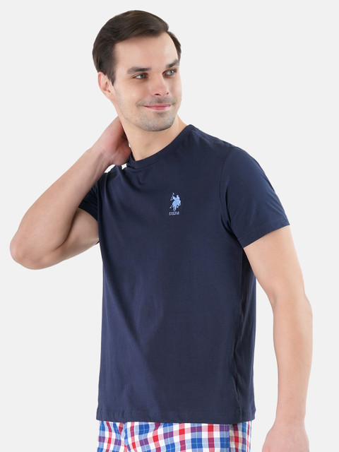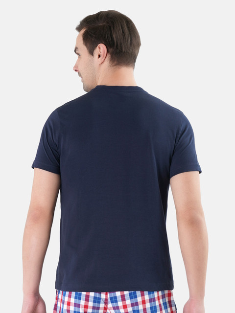 Pack of 1 navy blue lounge T-shirt, has a round neck and short sleeves