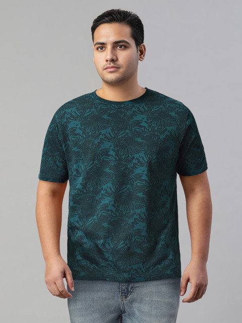 Teal printed T-shirt, has a round neck, and short sleeves