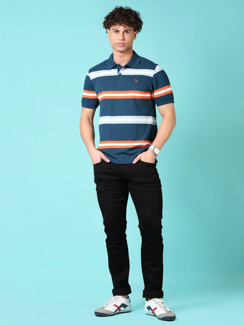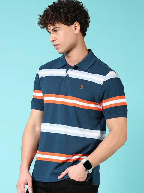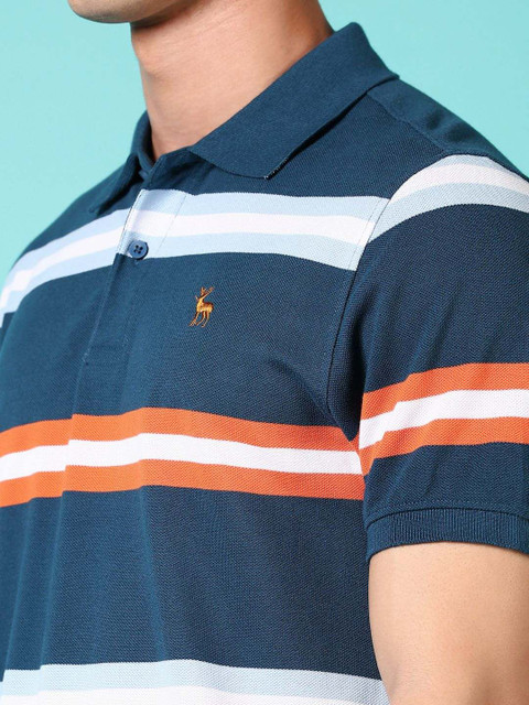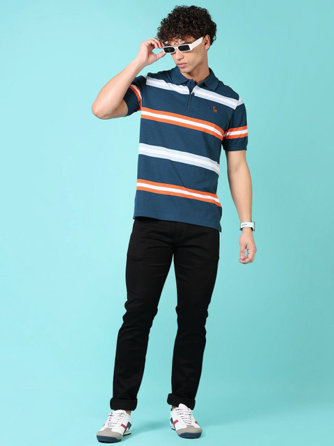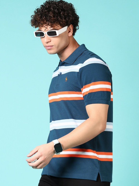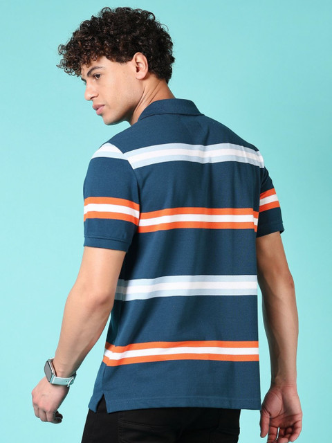 V-Mart Men Striped Polo Collar Cotton T-shirt