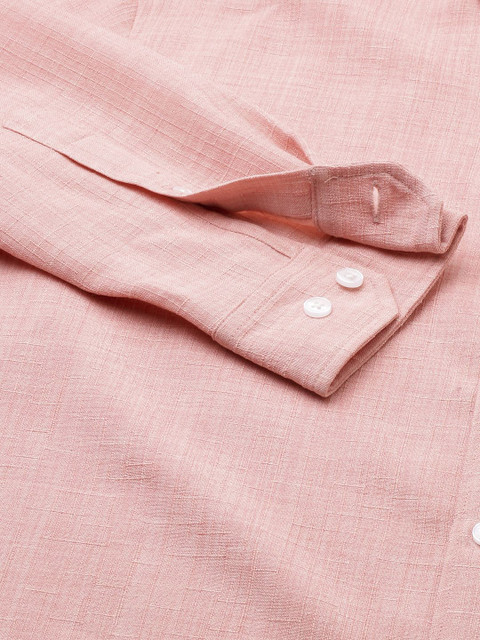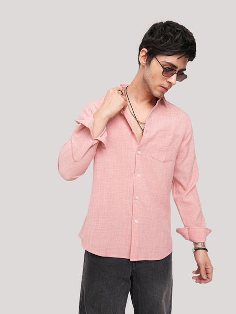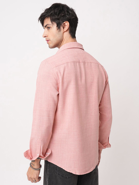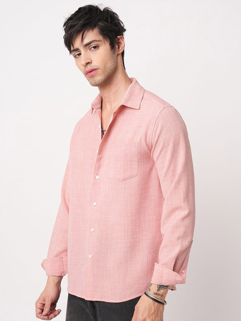 Coral textured opaque Casual shirt ,has a spread collar, button placket, 1 patch pocket, long regular sleeves, curved hem