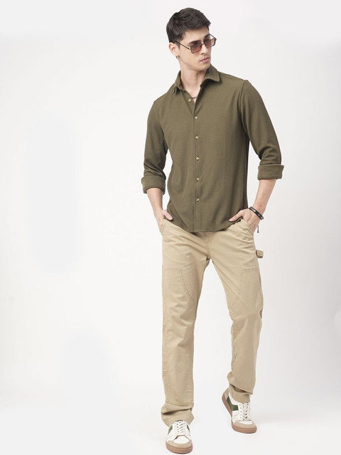 VASTRADO Men Olive Textured Shirt