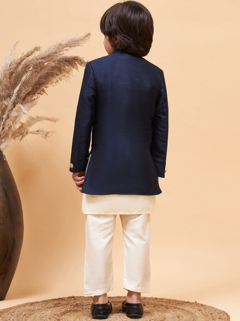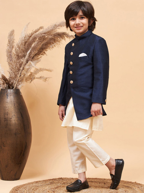 Navy-blue and cream-coloured solid sherwani set