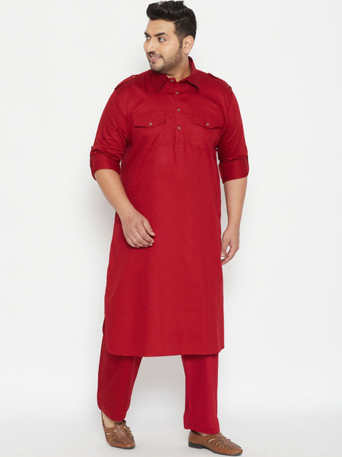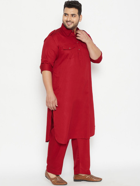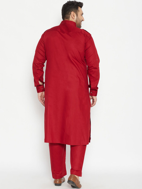 Maroon Solid Pathani Regular Kurta With Pyjamas