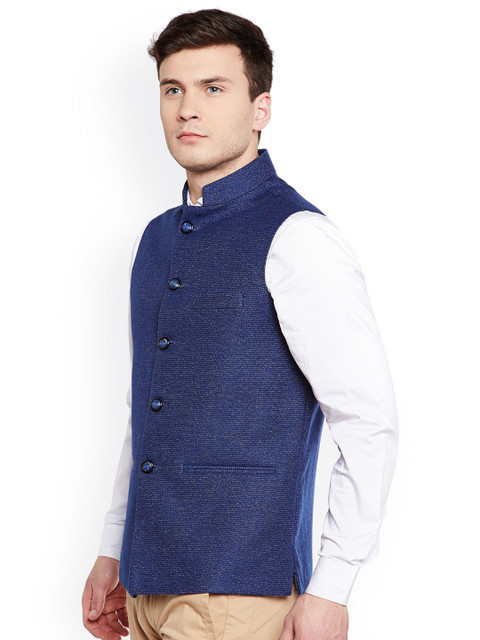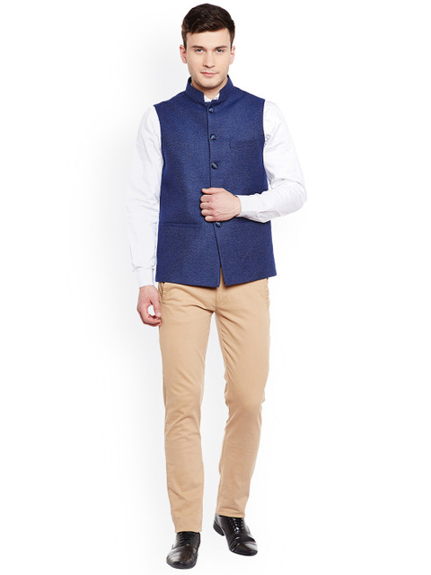This Nehru jacket from Wintage is a definite pick for your closet. Wear it with a solid shirt, a pair of trousers and leather shoes for a smart ensemble.